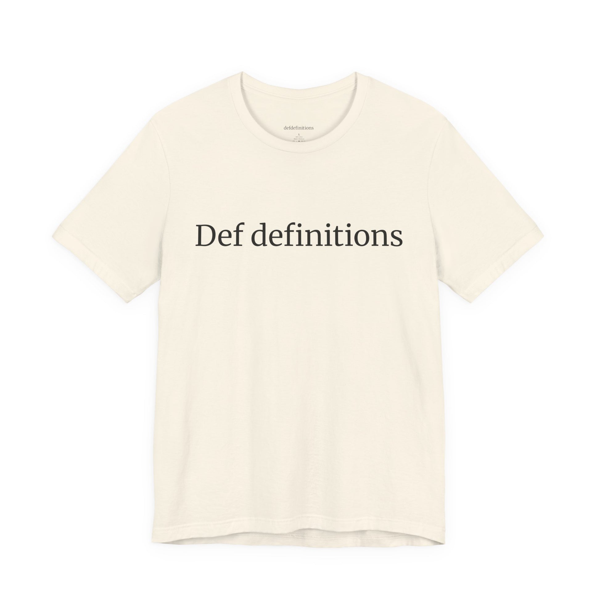 The Original Def definitions Tee is where it all began. Featuring the very first definition of our name, this unisex jersey short sleeve tee blends timeless style with everyday versatility. Its minimalist design and tailored yet relaxed fit make it a refined essential — equally at home in casual settings or styled for a polished look. This is a unisex fit. For a more fitted look, we recommend sizing down one size for women.